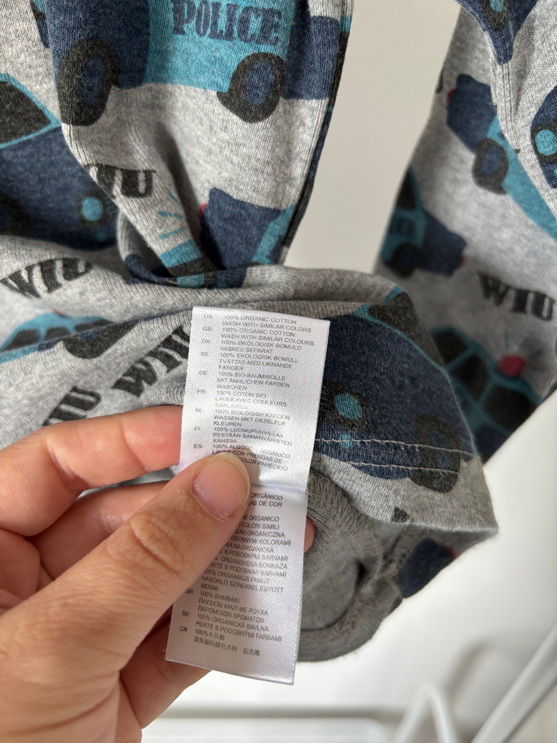 Grijze longsleeve met politie-auto's