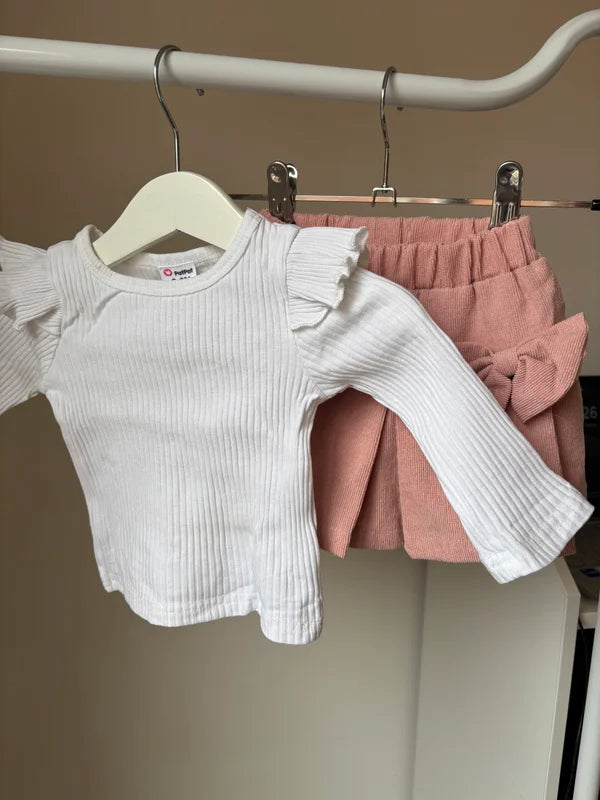 Setje van witte longsleeve en lichtroze rokje