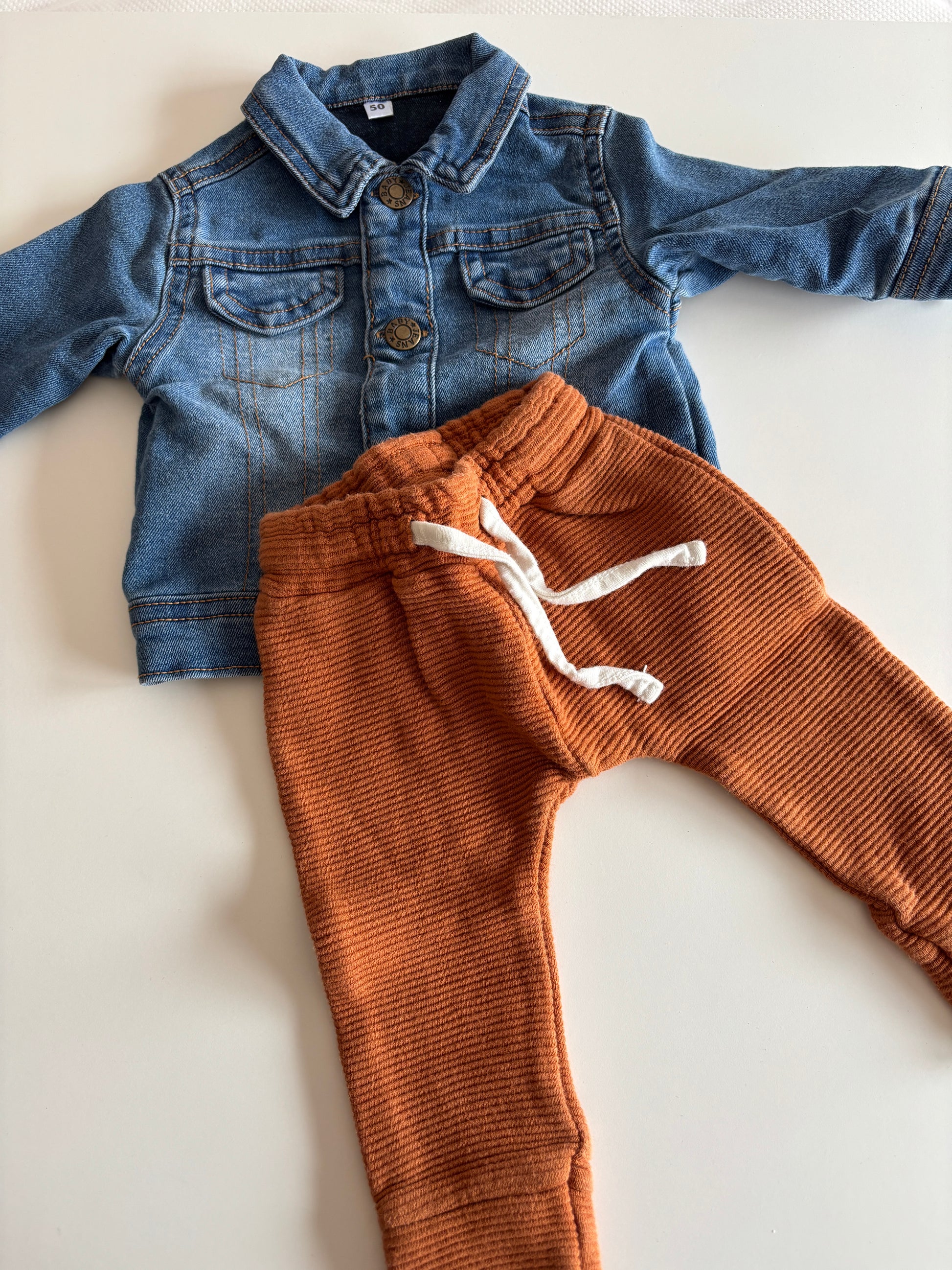 Setje van jeansvestje (Zeeman) en bruin broekje (Z8)