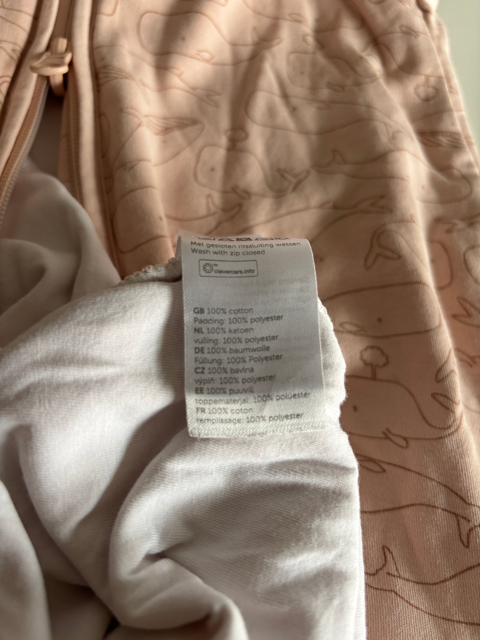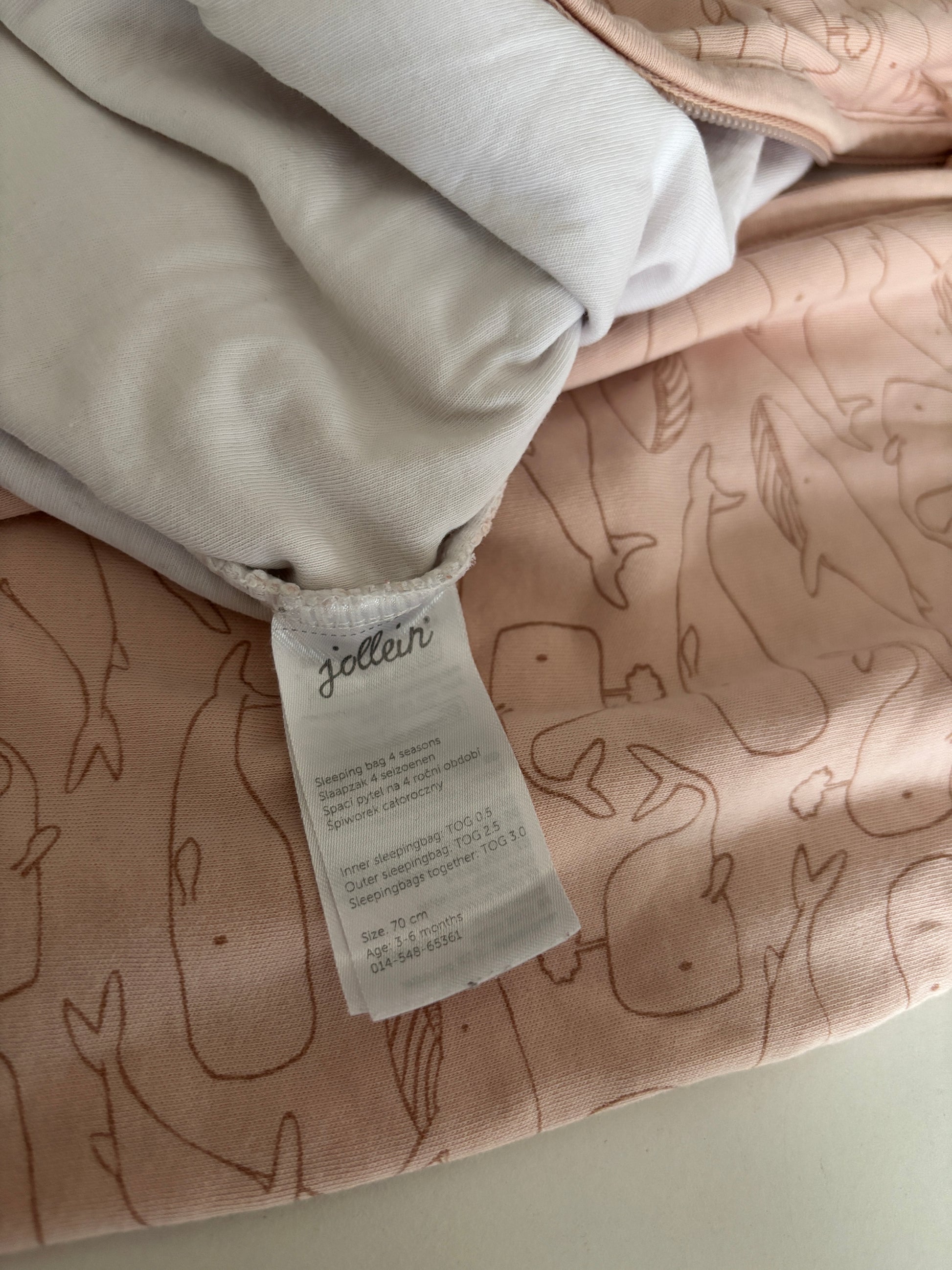 Lichtroze slaapzak met walvissen