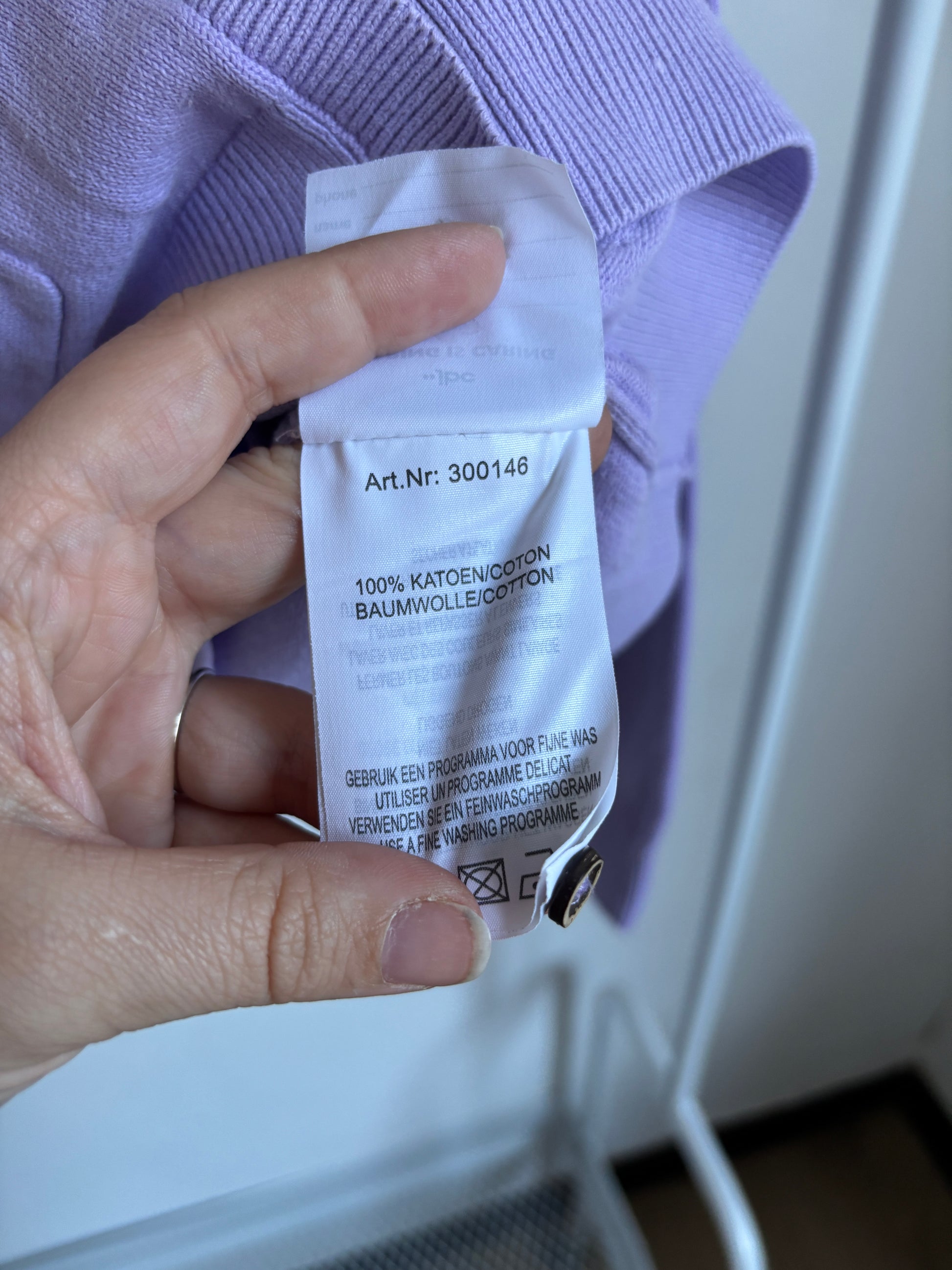Bij de cardigan zit een reserveknoopje inbegrepen.