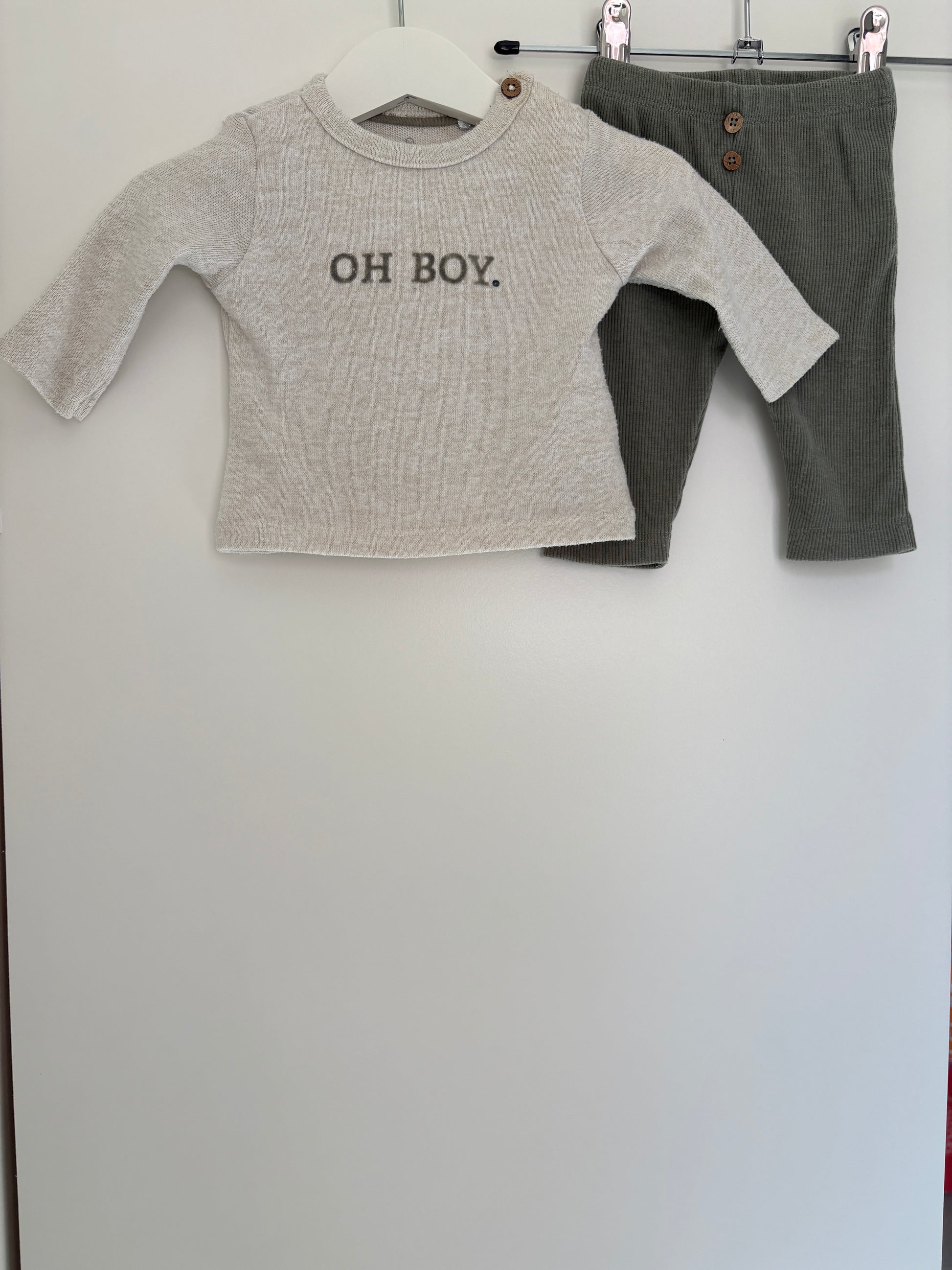 Setje "Oh Boy.": longsleeve en ribbroekje