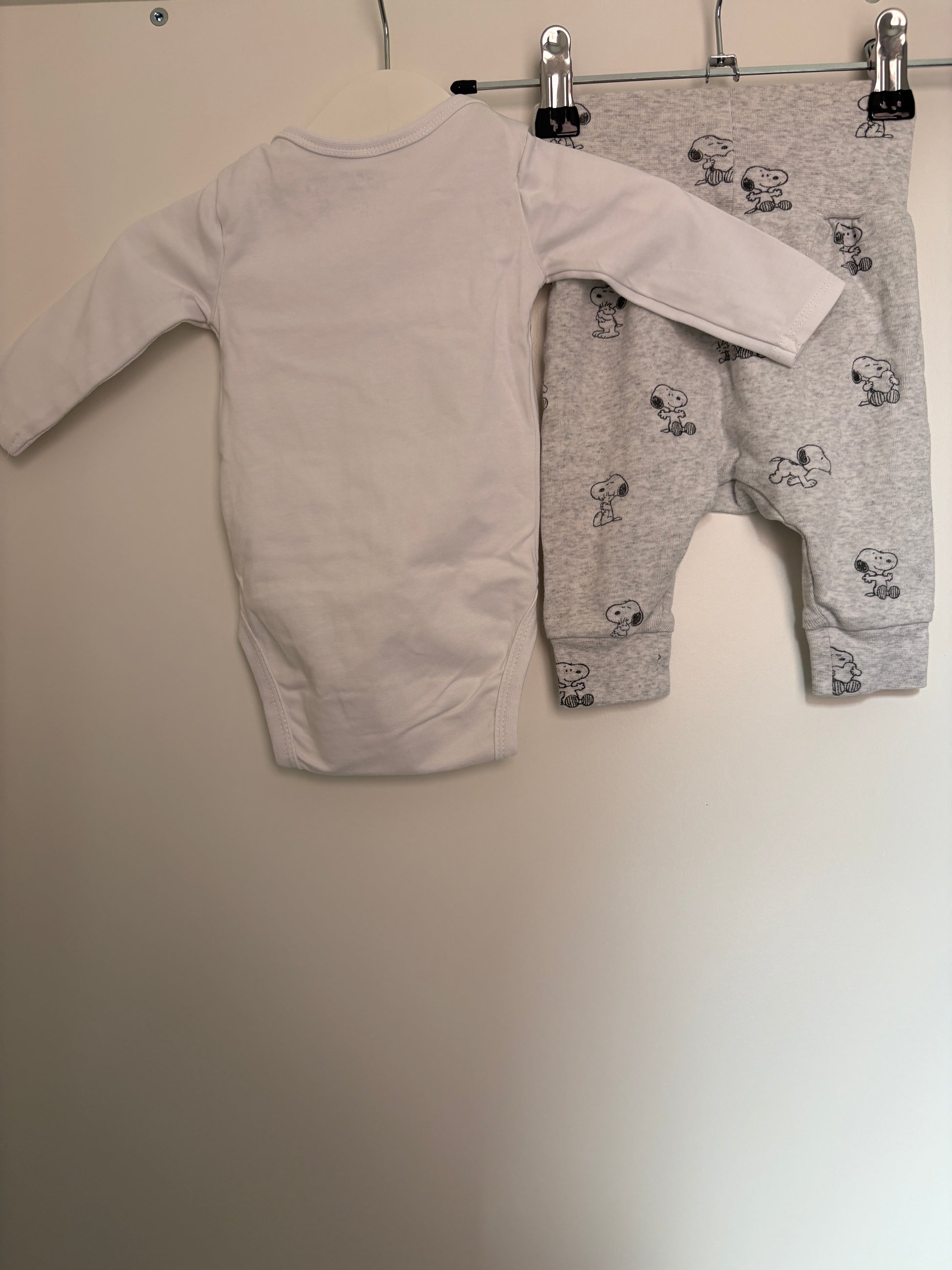Setje Snoopy: romper met lange mouwen en broekje