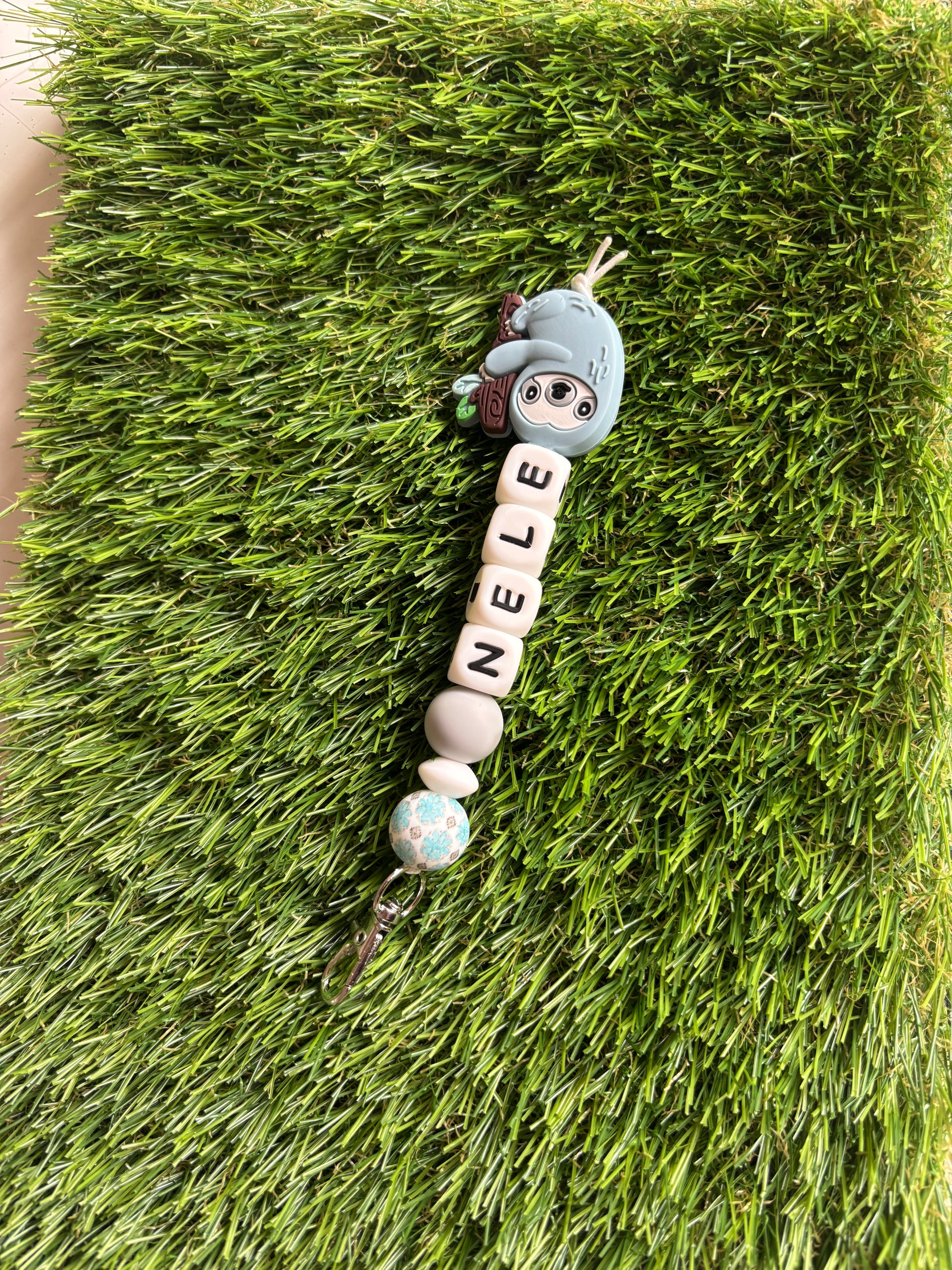 Sleutelhanger met naam, minimusketonhaak en figuurtje